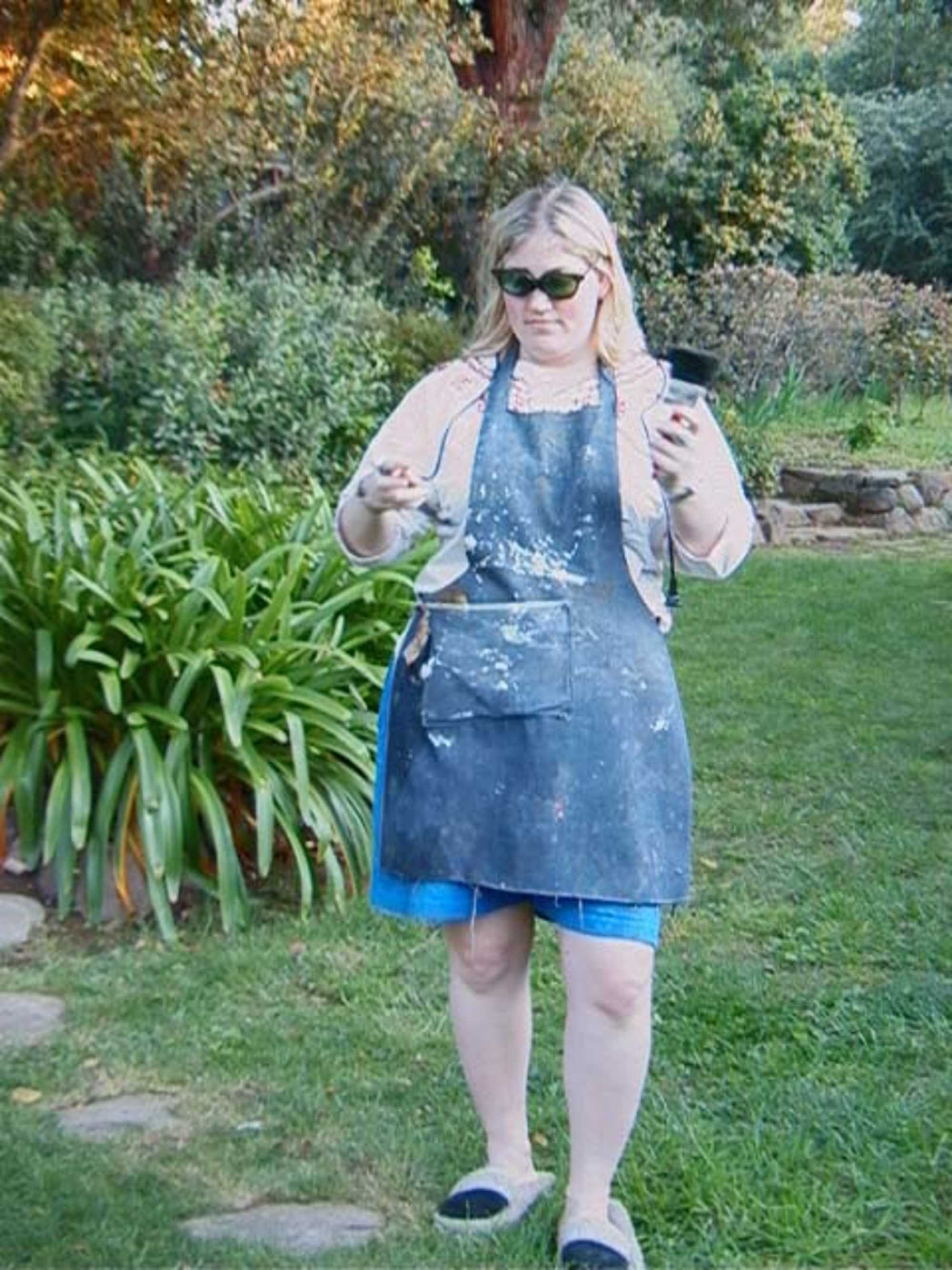 The post-funeral fashion show, started accidentally. We'd been ordering the piles of her possessions obsessively for days and the clothes were in her bedroom stacked in piles on the floor, awaiting a destination. Escaping the throngs of family and friends at the memorial, my cousins and I started rummaging through the piles, putting on her clothes and joking around. One thing led to the next and suddenly our little dress-up party poured out into the garden. We were trying to replicate the outfits we remembered Grams wearing when she was alive, and although we may have offended the East Coast side of the family, our little show most certainly lifted the spirits of the Siblings. Darting between friends in family on the lawn still out there chatting reminiscing, mourning and laughing, it was an hilarious way to end a period of mourning, but no less a collective family expression of love.