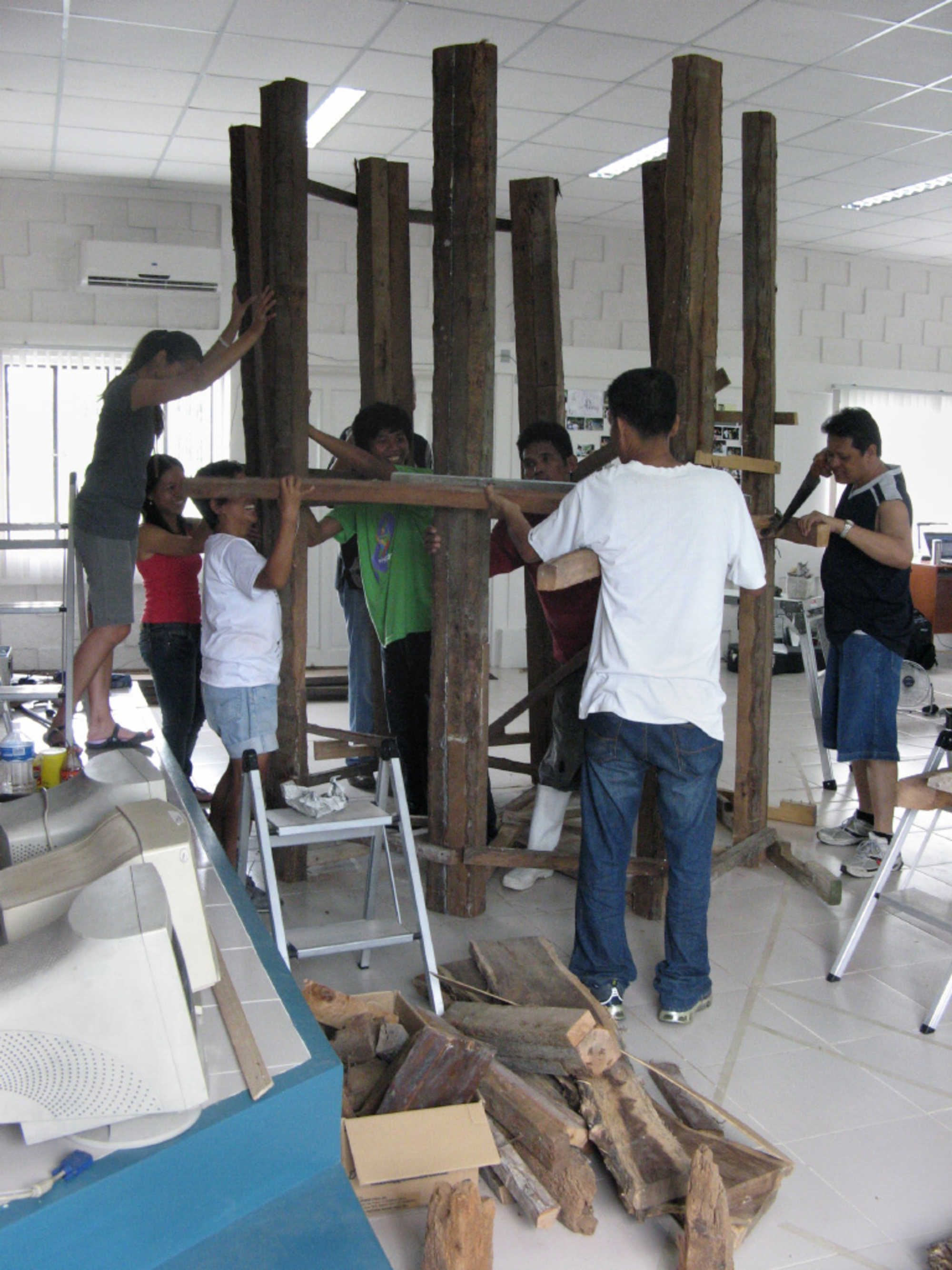 Biomodd is a collaborative art project conceived to challenge presumed notions of opposition between nature and technology in different cultures throughout the world. The project started in 2007 during a residency of Angelo Vermeulen at The Aesthetic Technologies Lab in Athens, Ohio. Since then multiple versions have been built both by the people that originally came up with the idea, and by other communities throughout the world. Up till now, Biomodd art works have been created and showcased in Athens (Ohio), Los Banos (Philippines), Manila (Philippines), Cavite (Philippines), Sint-Niklaas (Belgium) and Maribor (Slovenia). In 2011 more will follow in New Zealand and the Netherlands. Biomodd is an open source art work and can be built and improved upon by anyone.