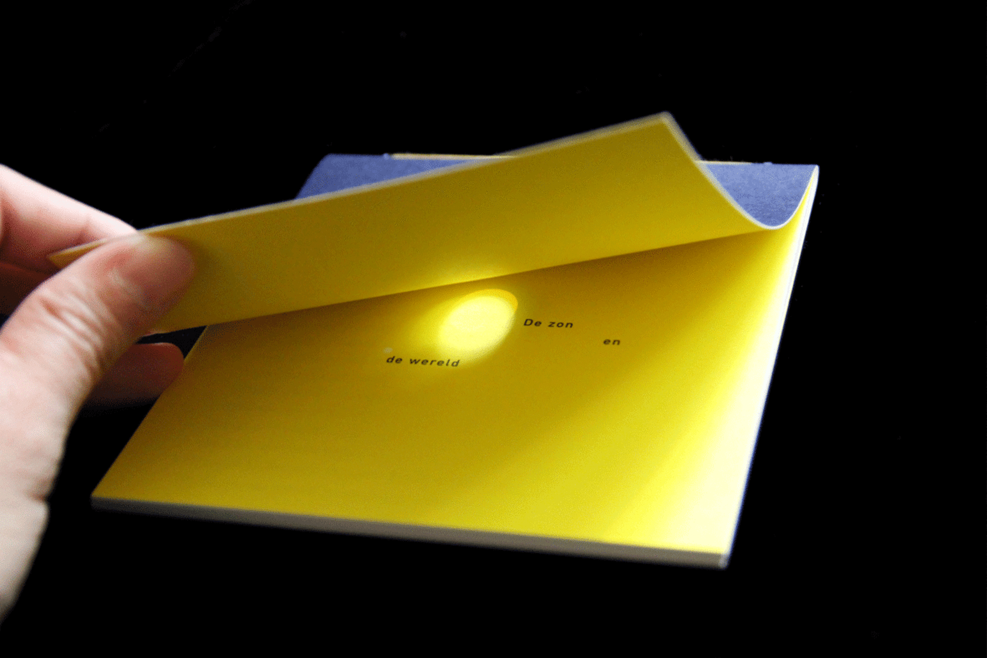 Mostly the design is presented to the end-users in its completion, however, there are ways of involving the end-users to participate in or be a witness to the design process. With the design of a poetry booklet we had attempt in involving the end-users to either perform or witness the completion of the design. For the design to be in its completion, a circular silhouette representing the âsunâ had to yet make its physical mark on the half title page (the first page). This was to be done in several ways. The end-users could either lift the cover slightly to let in sunlight through the circular die-cut on the cover, the sunlight shinning on the designated spot to form the missing silhouette of the âsunâ. Or by rubbing with the finger against the circular die-cut hole, the grease darkens the ink and forms the missing silhouette. Naturally, there will be end-users that either overlook or are insensitive to this design element. When there is no participation from the end-users, the circular silhouette of the âsunâ can be conceived by another factor, time. Over time the chemical reaction of being exposed to sunlight will result in bleach of the ink on paper, thus the sunlight leaving behind its mark to finish the design with the circular silhouette of the âsunâ.