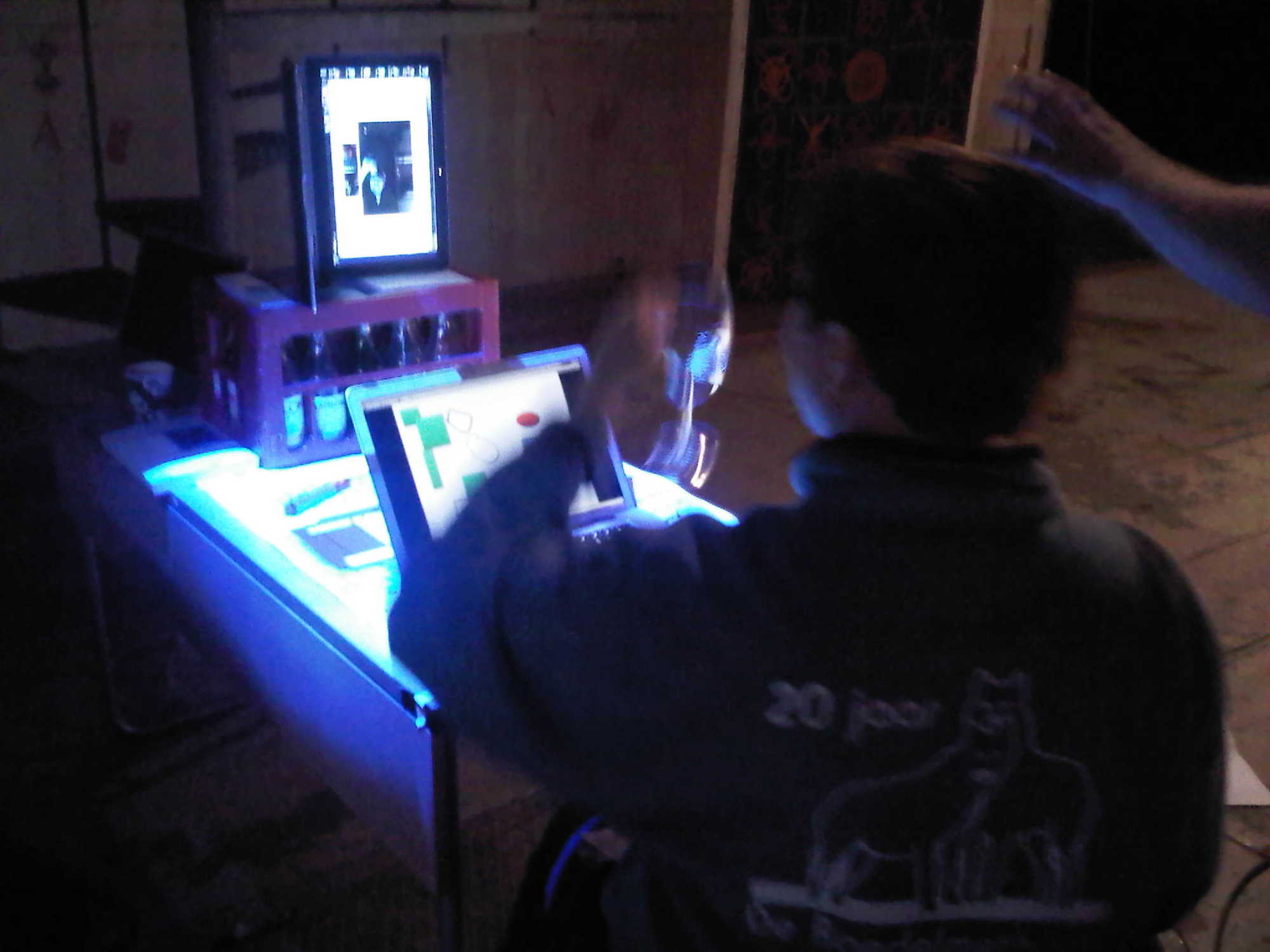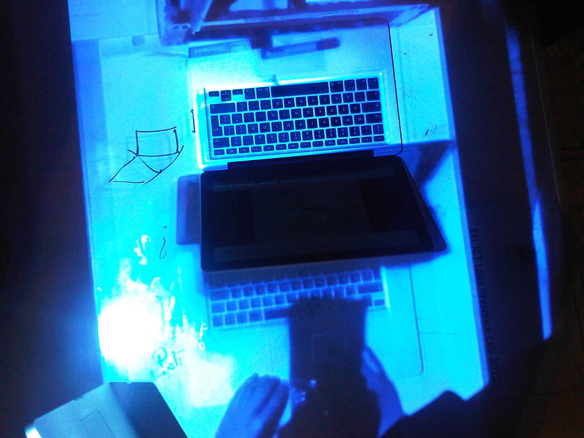 Here you find a movieclip and photo's of the first experimenst with the two mediated sketching tables in the presence lab in MArch 2012.