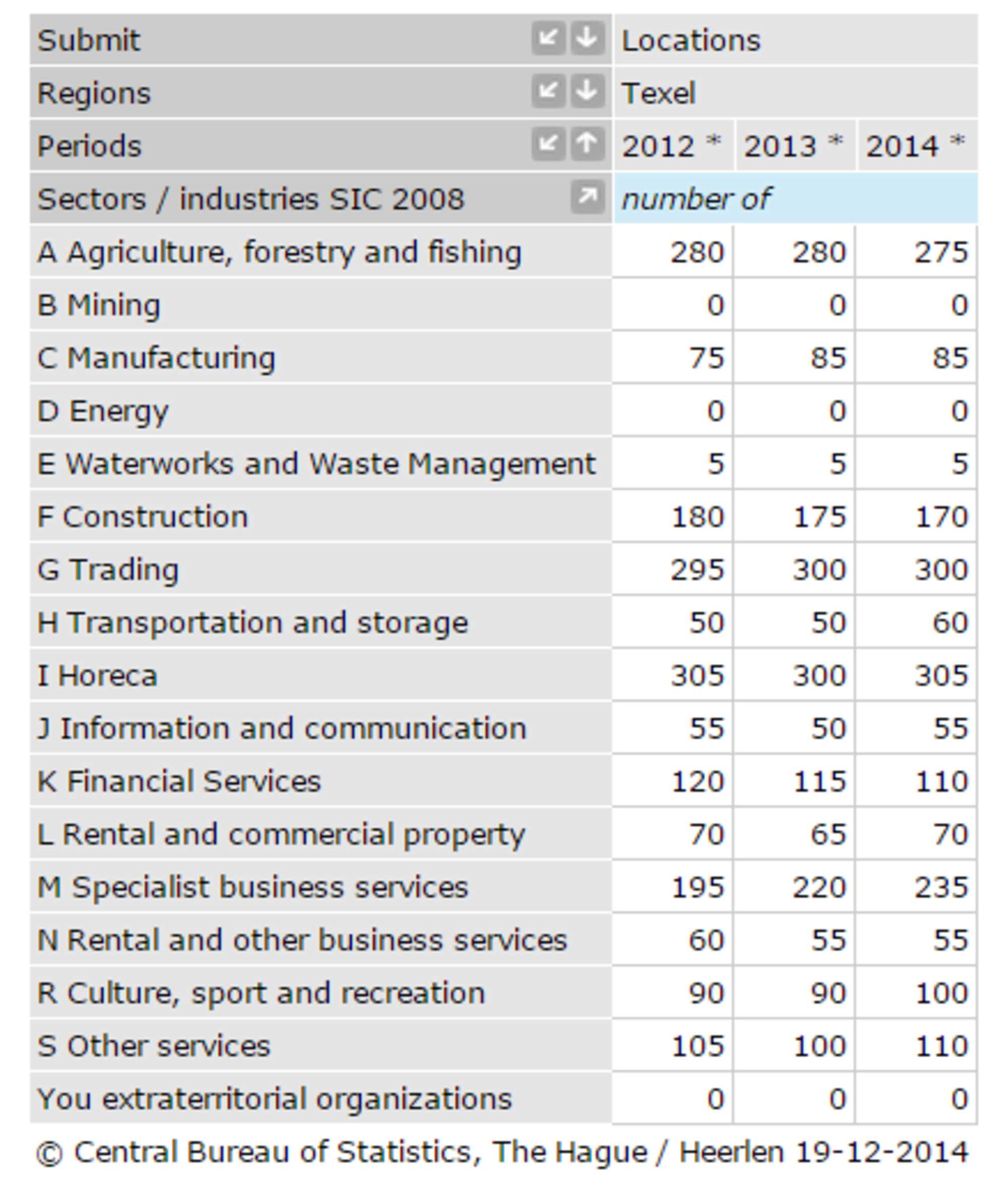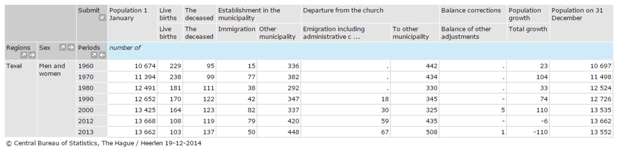Central Bureau of Statistics (2015). Statistics Netherlands: Texel. Retrieved on January 2015, from: http://statline.cbs.nl/Statweb/search/?Q=texel&LA=EN