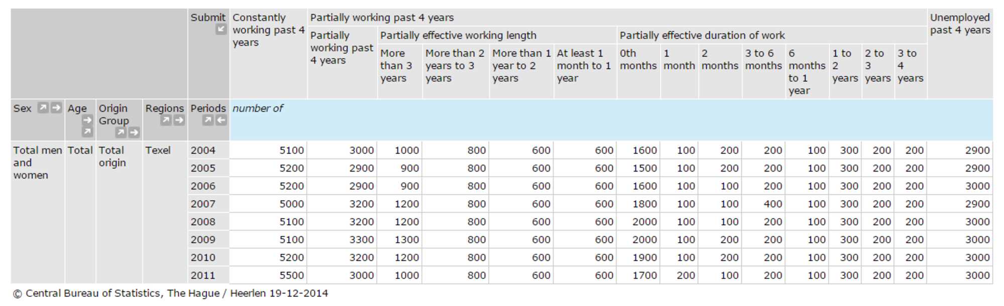 - Employment history of the Dutch population in the past 4 years (2014)