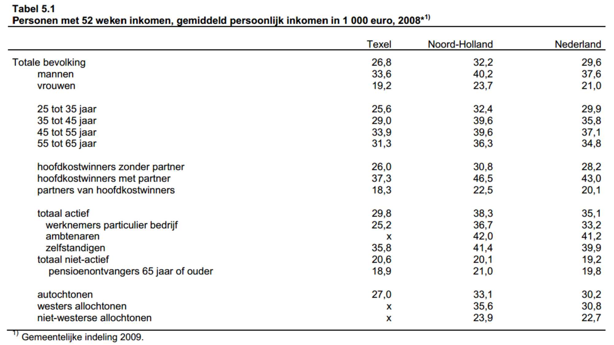General statistics about people in Texel