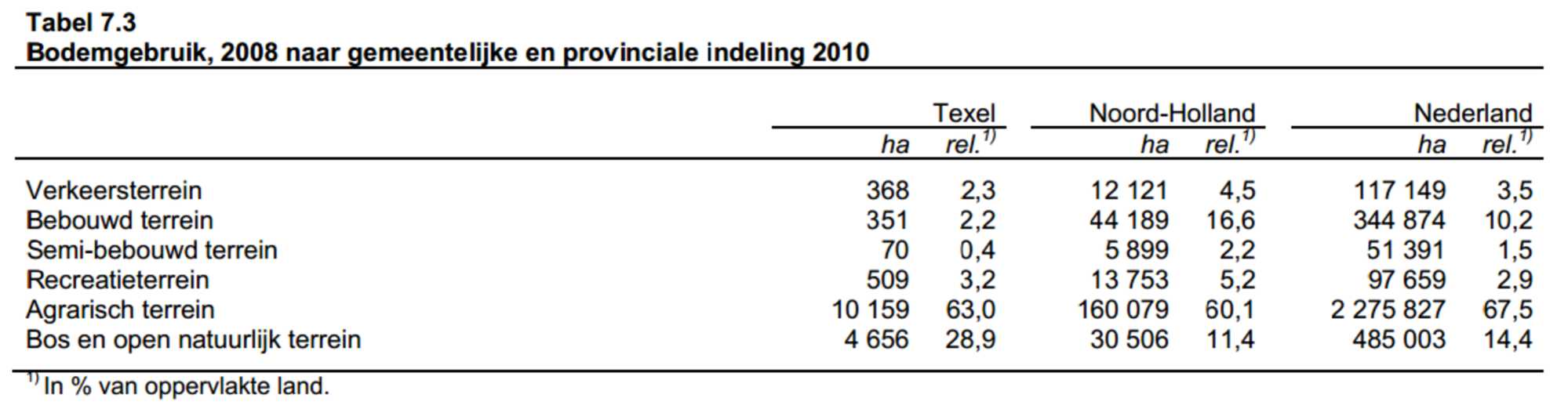 Central Bureau of Statistics (2011). Geemente Op Maat Texel 11. Retrieved on December, 2014, from: http://www.cbs.nl/NR/rdonlyres/8DC1EF23-9ADA-4C3E-89DE-8FE0395DC43C/0/Texel.pdf