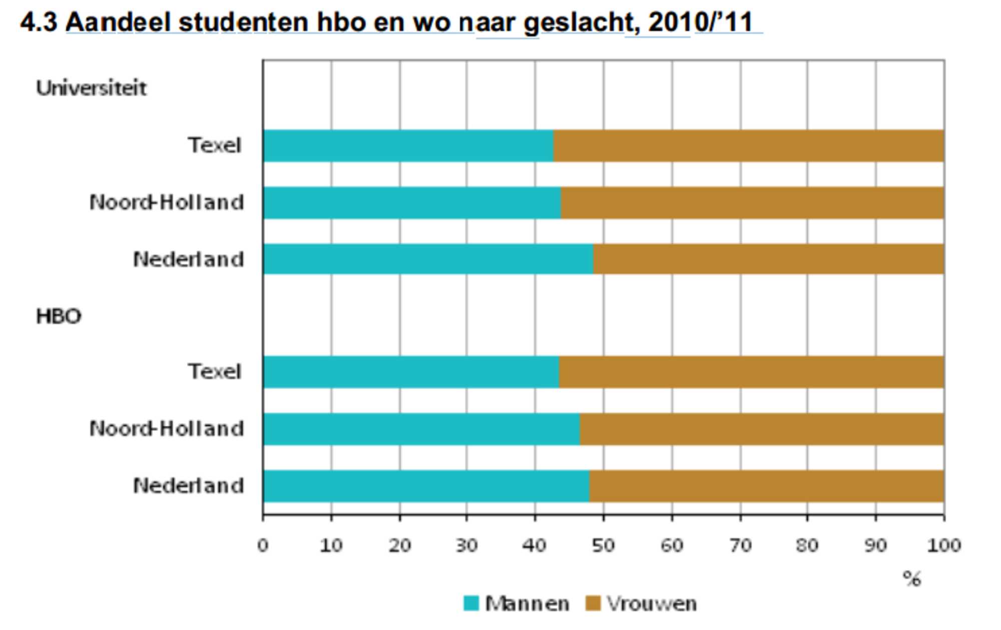 Proportion of students: college and university students by gender, 2010 / '11